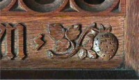 Ninian Comper's unique 'signature' can also be seen in this window. It's in its customary place at the bottom right of the window. His rather unusual signature of the strawberry is linked with his high regard for his father who demonstrated his evotion to the poor in so many practical ways. Fr John Comper died suddenly in the Duthie Park in Aberdeen, on the banks of the River Dee, while giving strawberries to poor children. What better memorial to his father ... the strawberry which can be seen in churches throughout the world! |