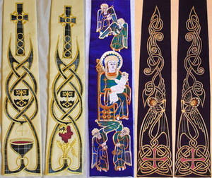 Ruth's Ecclesiastical Embroidery work is inspired by Scotland, its history, its fabrics and by traditional Pictish and Celtic art. She always tries to find some way of making the piece particularly relevant for the person for whom they are intended, either in the choice of fabrics or in the designs themselves. Her tartan-lined chasubles and embroidered stoles are in demand all over the world. As well as Ruth's ecclesiastical embroidery work, her main work is under the name of Anna Macneil ... you can find out more here at annamacneil.scot |